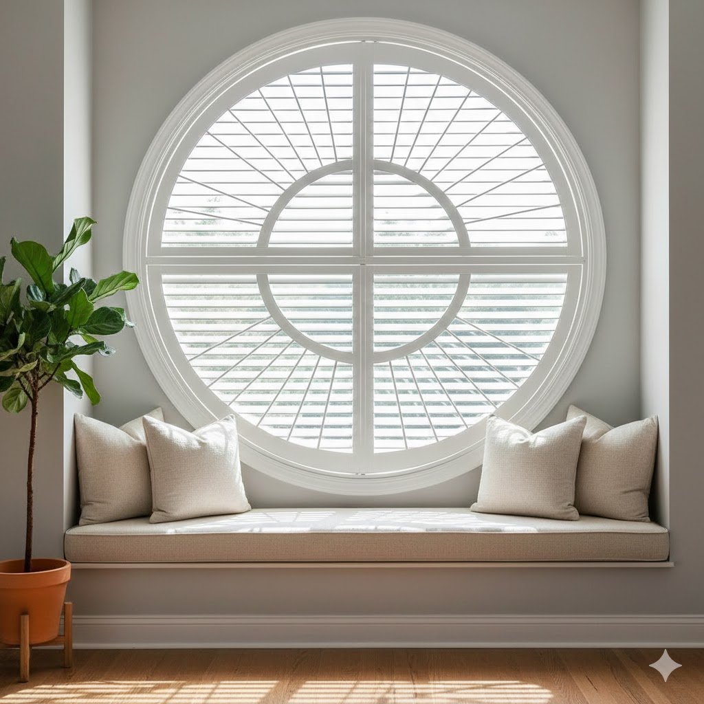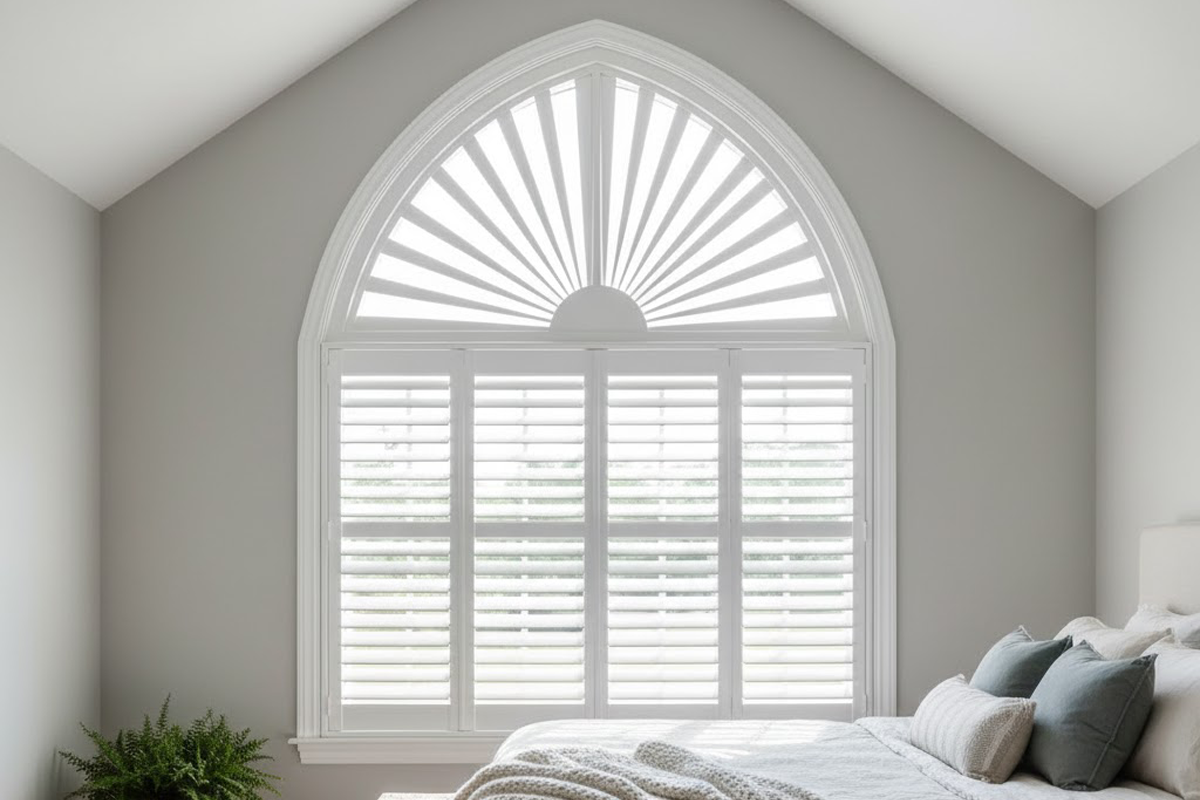 Custom-built to fit unique window shapes—arches, triangles, circles, and more—these shutters enhance architectural features while providing practical shading.
